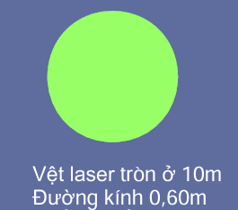 - Vệt laser tròn ở khoảng cách 10m có đường kính 0,60m
